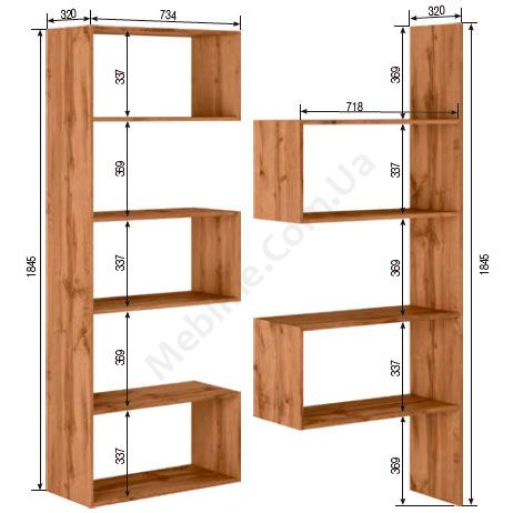 - Розмір першого стелажа 734х320х1845 мм, другого — 718х320х1845 мм.