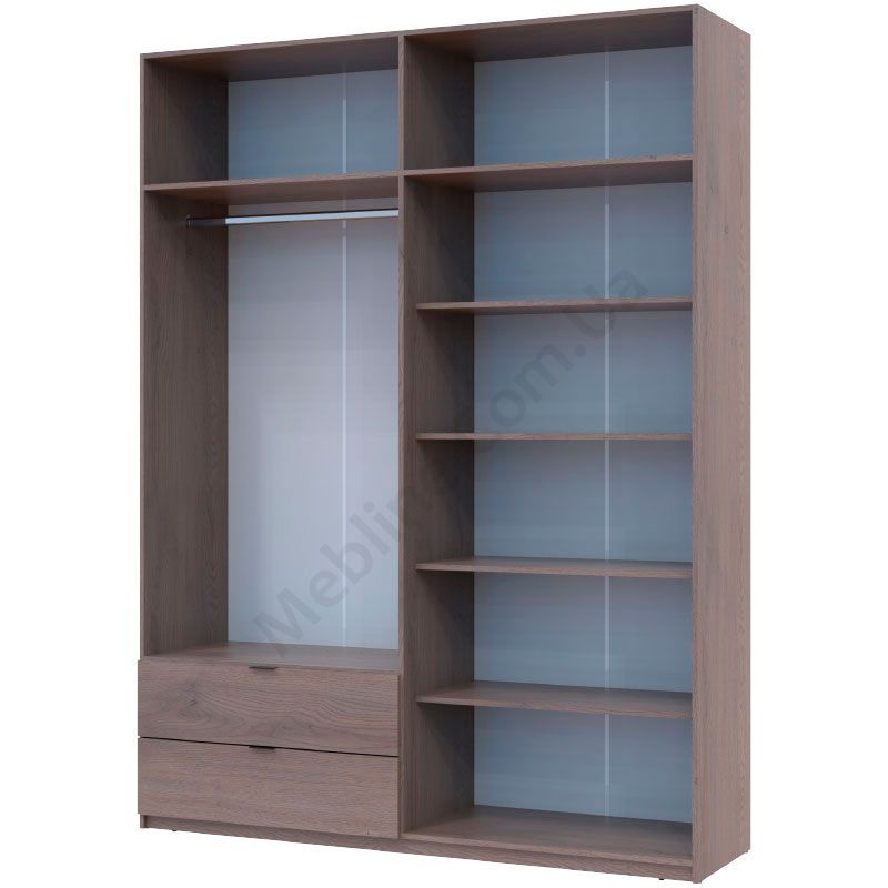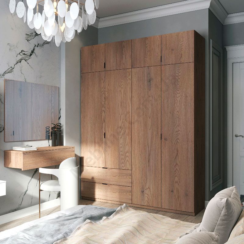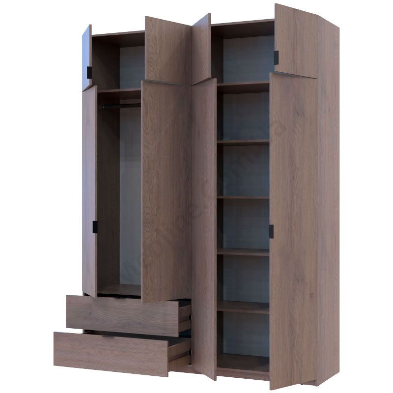 Розпашна чотиридверна шафа з висувними шухлядами та антресолями.
