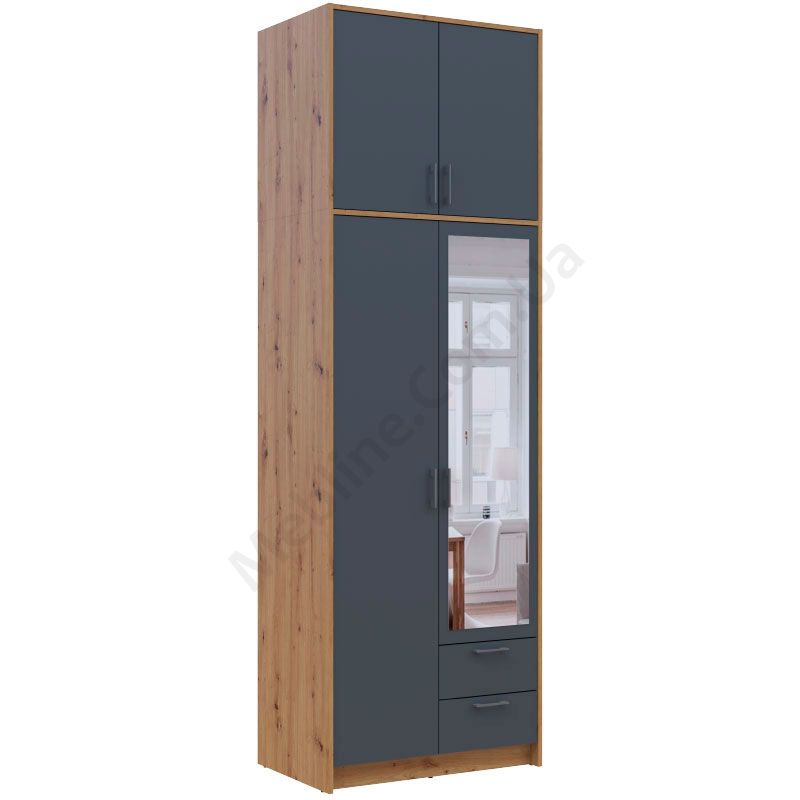 У магазині Ви можете купити Шафа для одягу Ронді з високою антресолею та дзеркалом 2 ДСП Дуб Артизан + Графіт за доступною ціною та доставкою по всій Україні. Обирайте