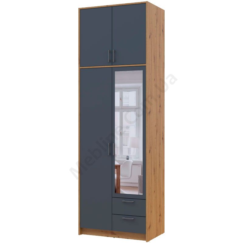 Шафа для одягу Ронді з високою антресолею та дзеркалом 2 ДСП Дуб Артизан + Графіт - Doros