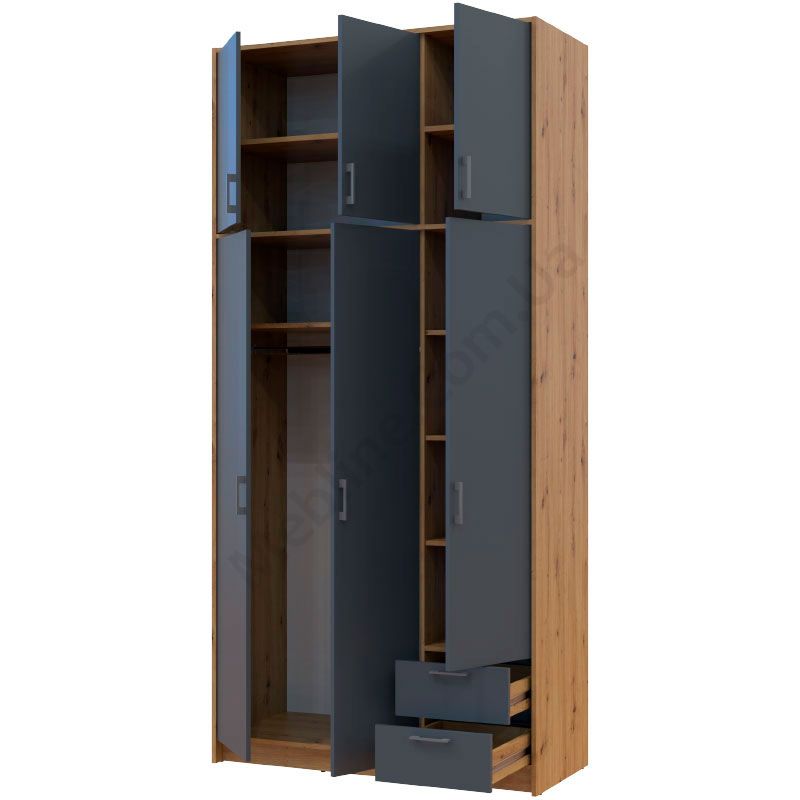Шафа для одягу Ронді з високою антресолею 3 ДСП Дуб Артизан + Графіт - Doros