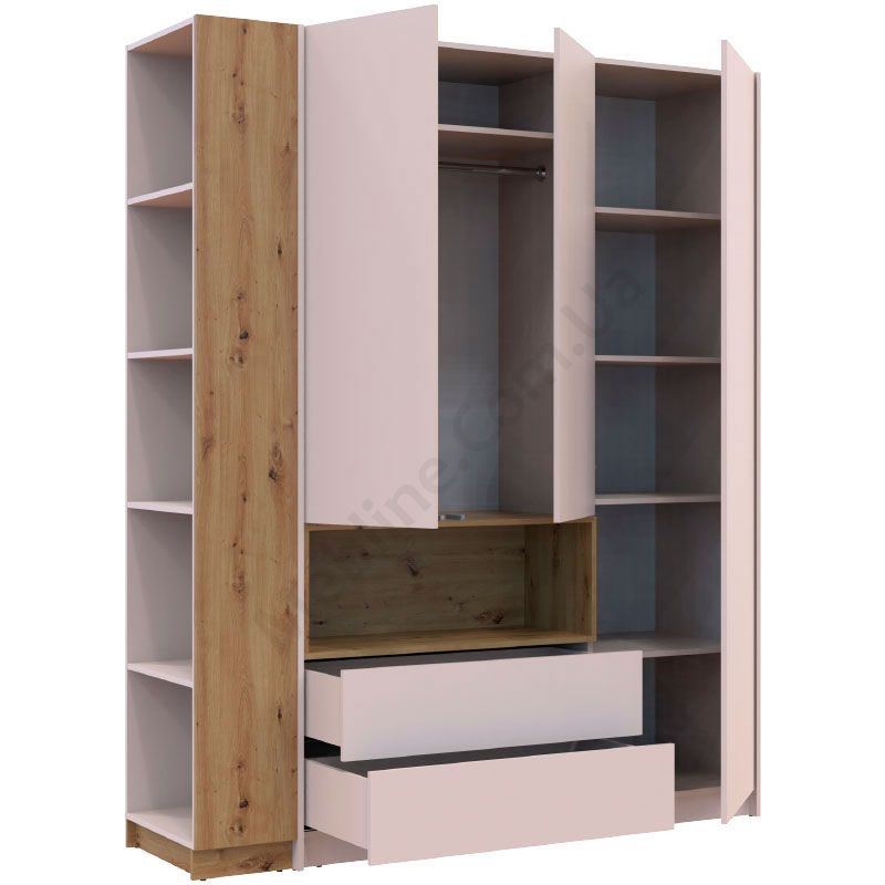 Шафа для одягу з нішою та етажеркою Дейл (інверсія) 3 ДСП Кашемір + Дуб Артизан