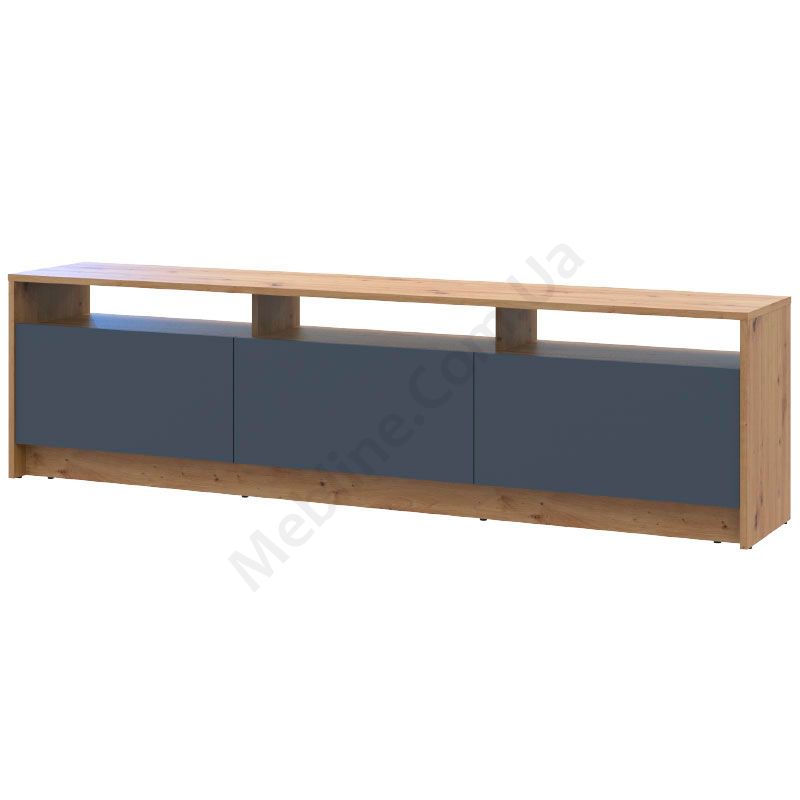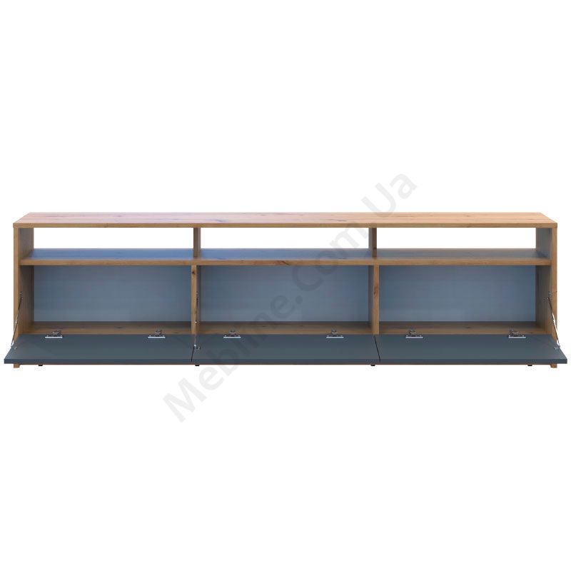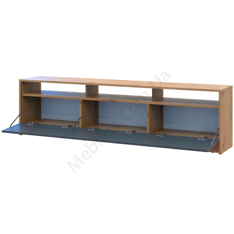 Тумба під телевізор з дверцятами та відкритими полицями.