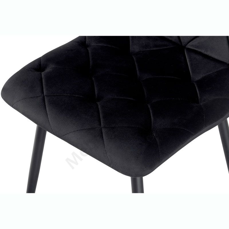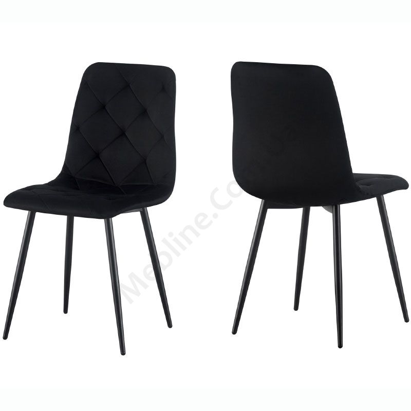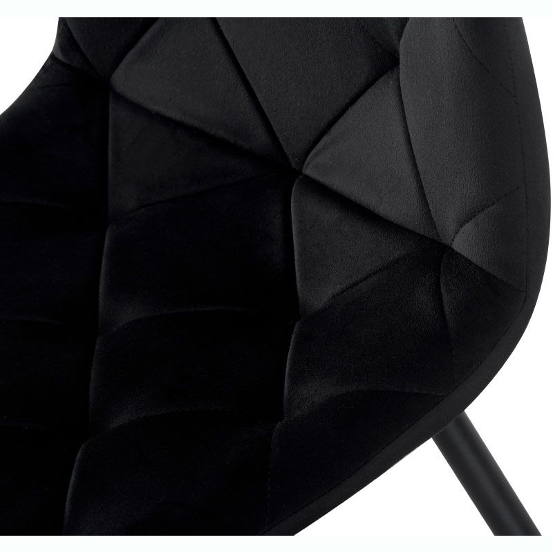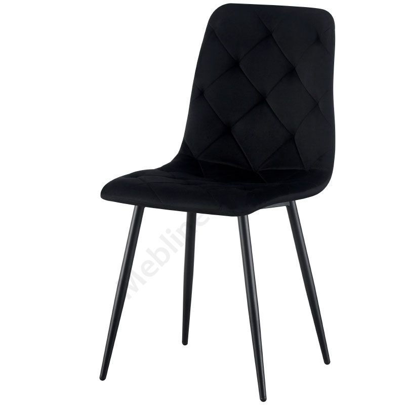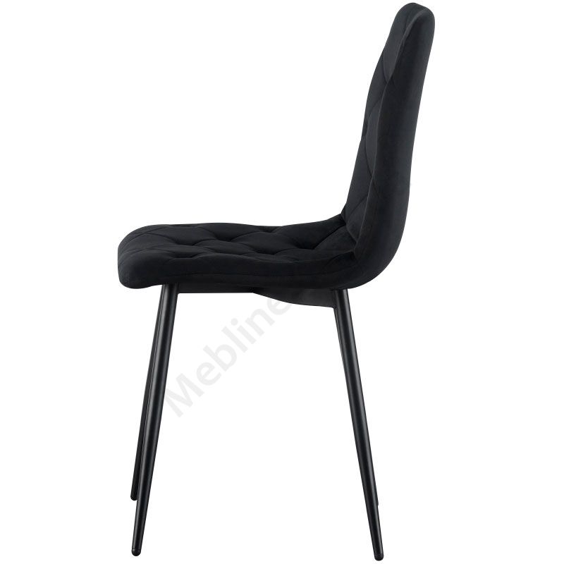 М’який стілець без підлокітників на металевих ніжках з велюровою оббивкою чорного кольору.
