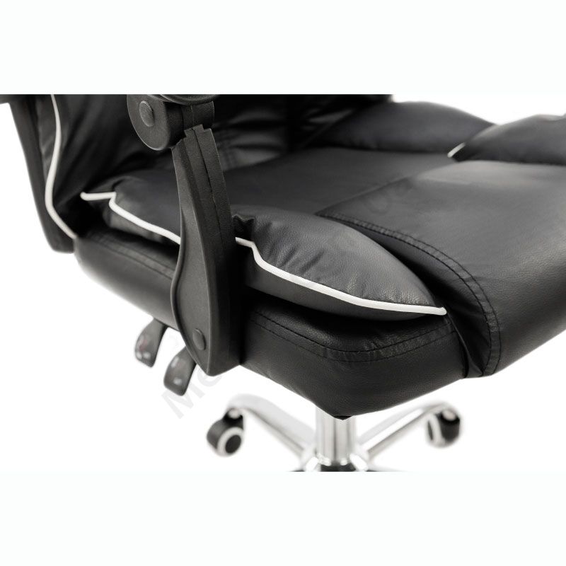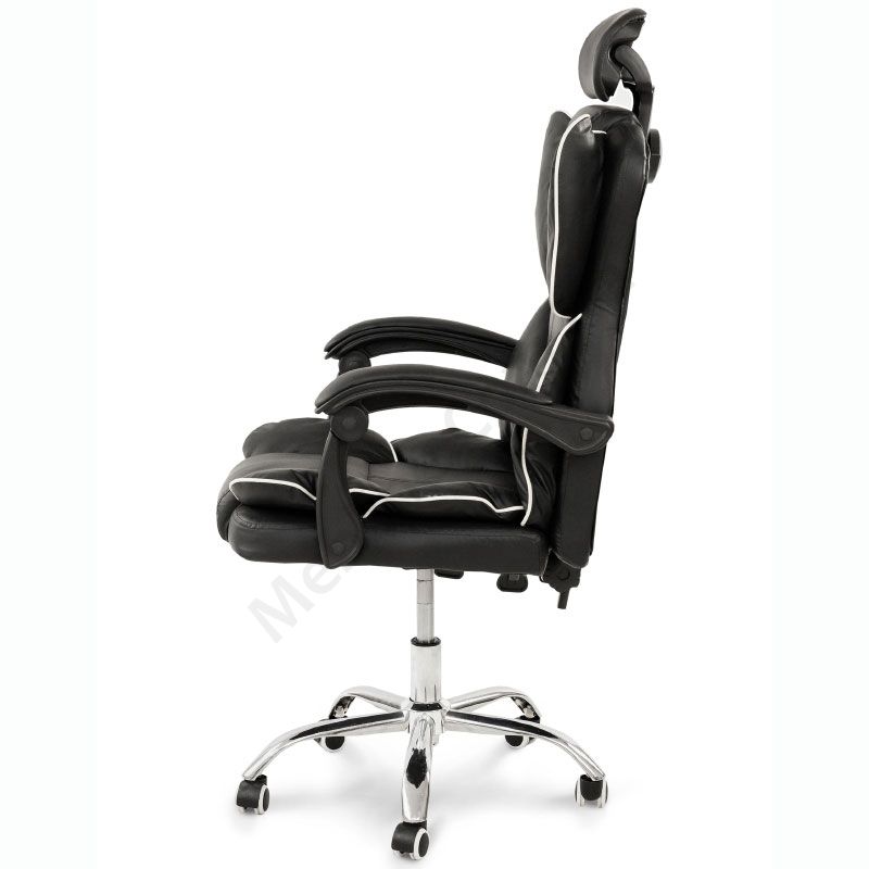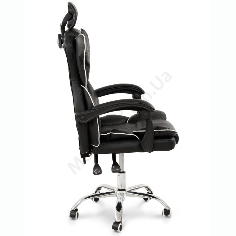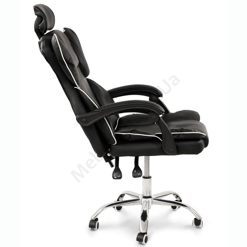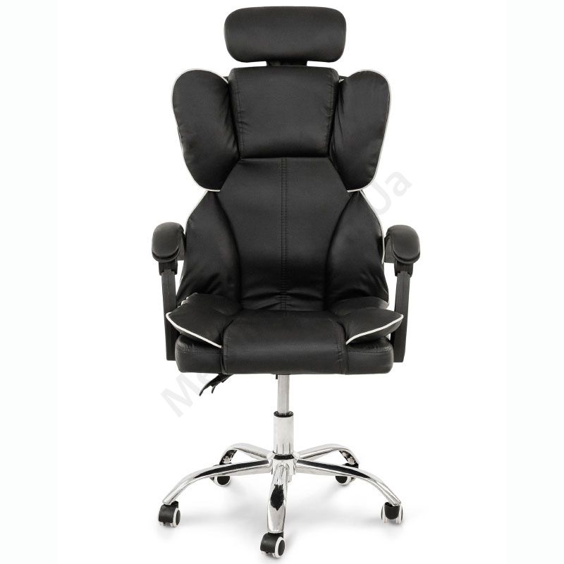 Комп’ютерне крісло на металевій хрестовині з бічною підтримкою та м’якими підлокітниками.