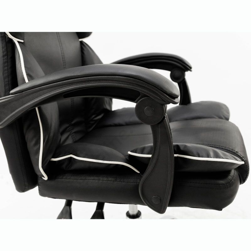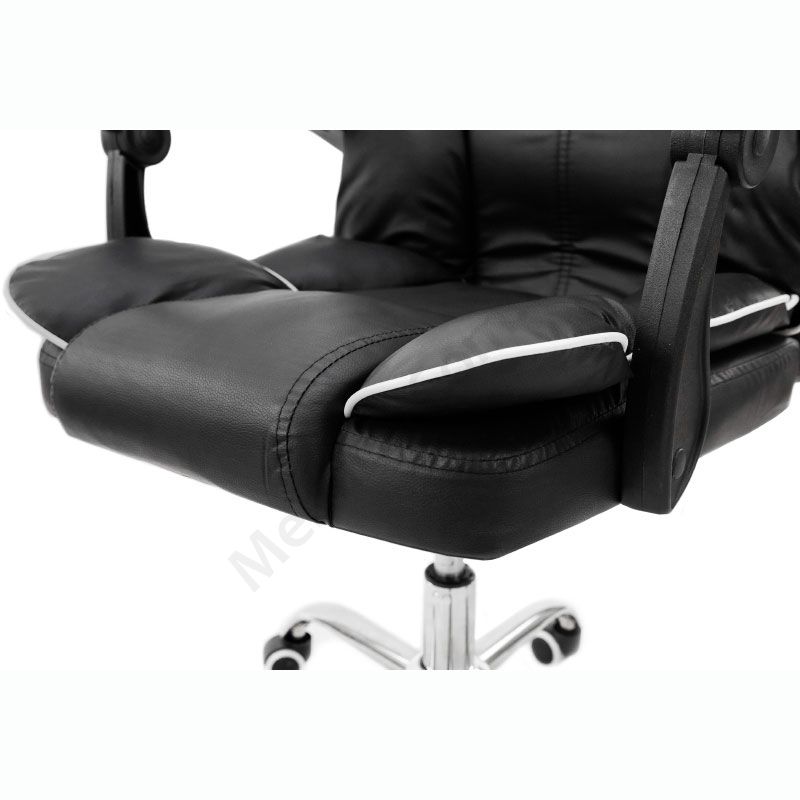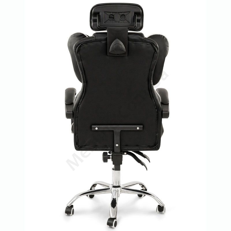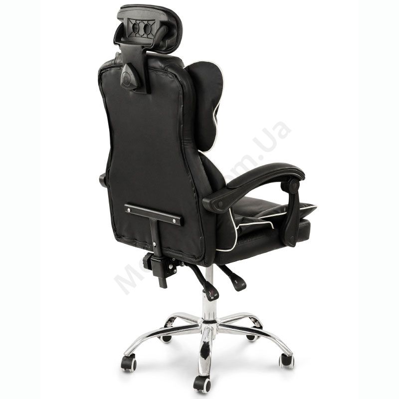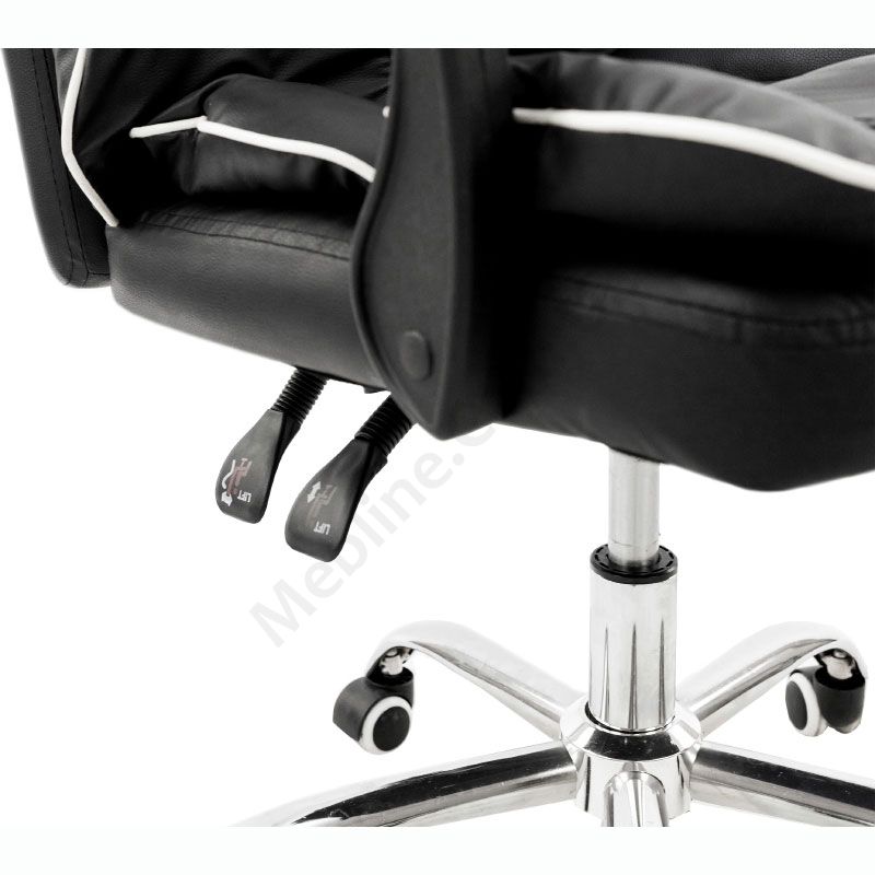 Комп’ютерне крісло на металевій хрестовині з бічною підтримкою та м’якими підлокітниками.