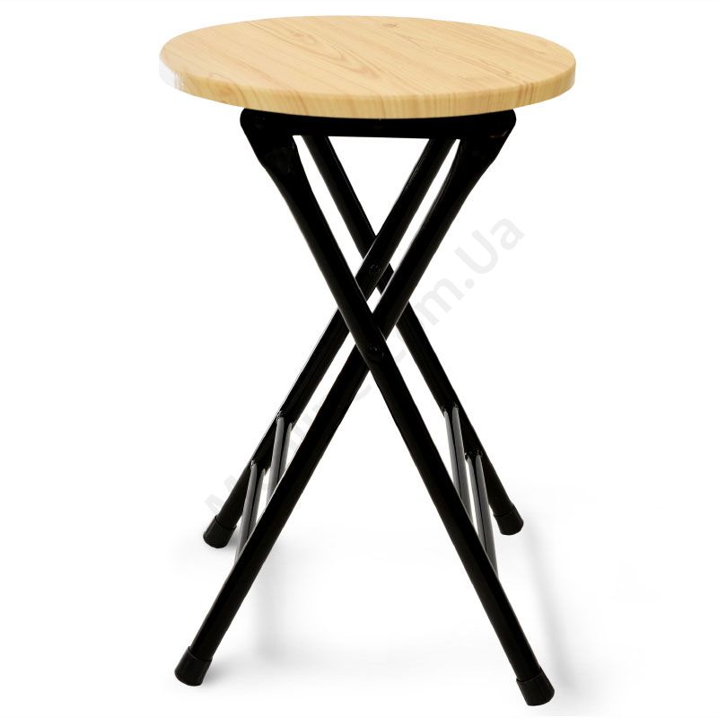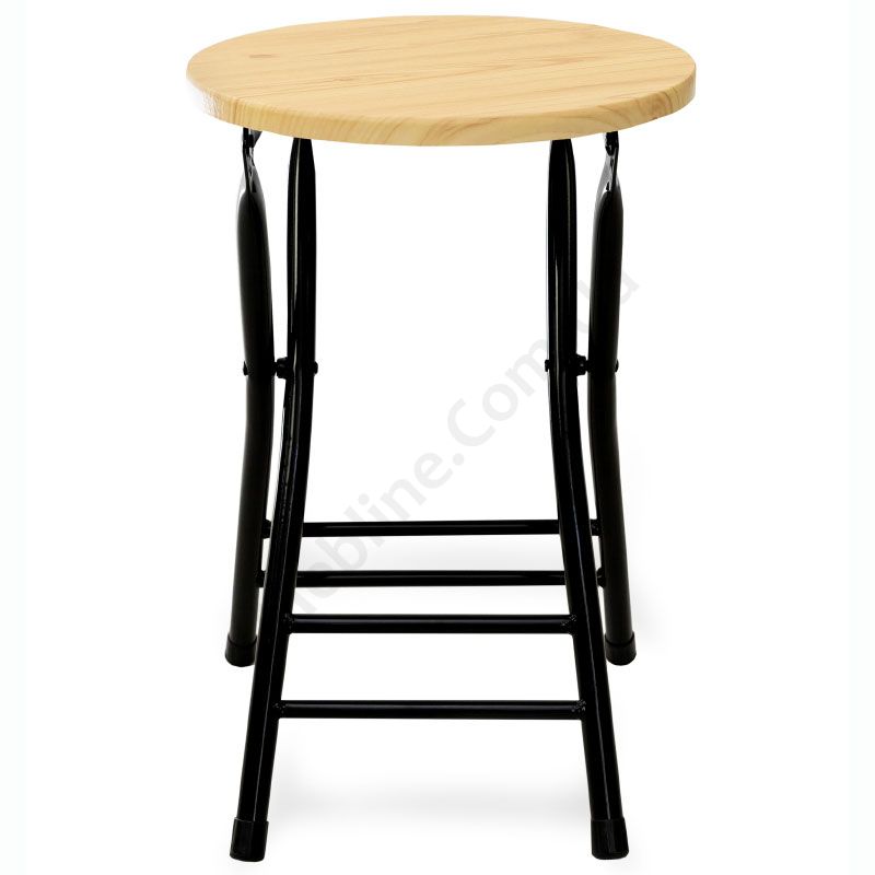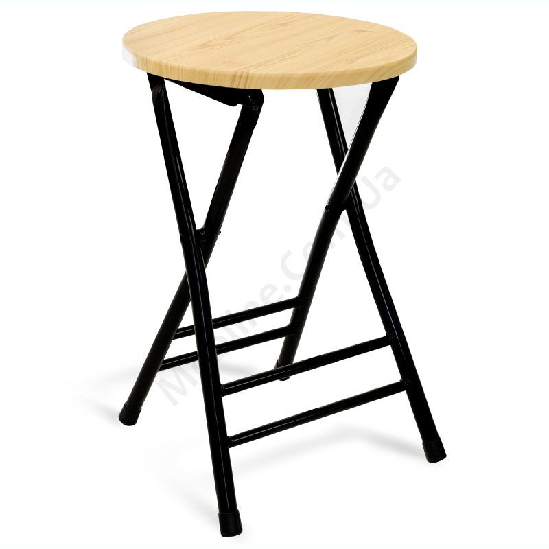 Розкладний компактний табурет із сидінням МДФ на чорному металевому каркасі.