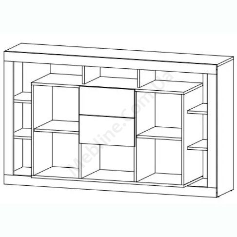 Тумба з дверцятами, висувними шухлядами та відкритими полицями.