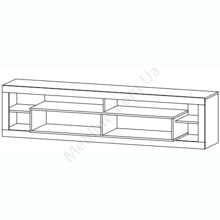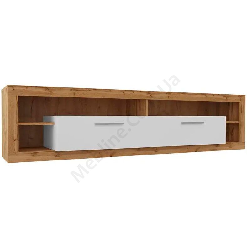Тумба під телевізор з відкритими секціями та дверцятами.