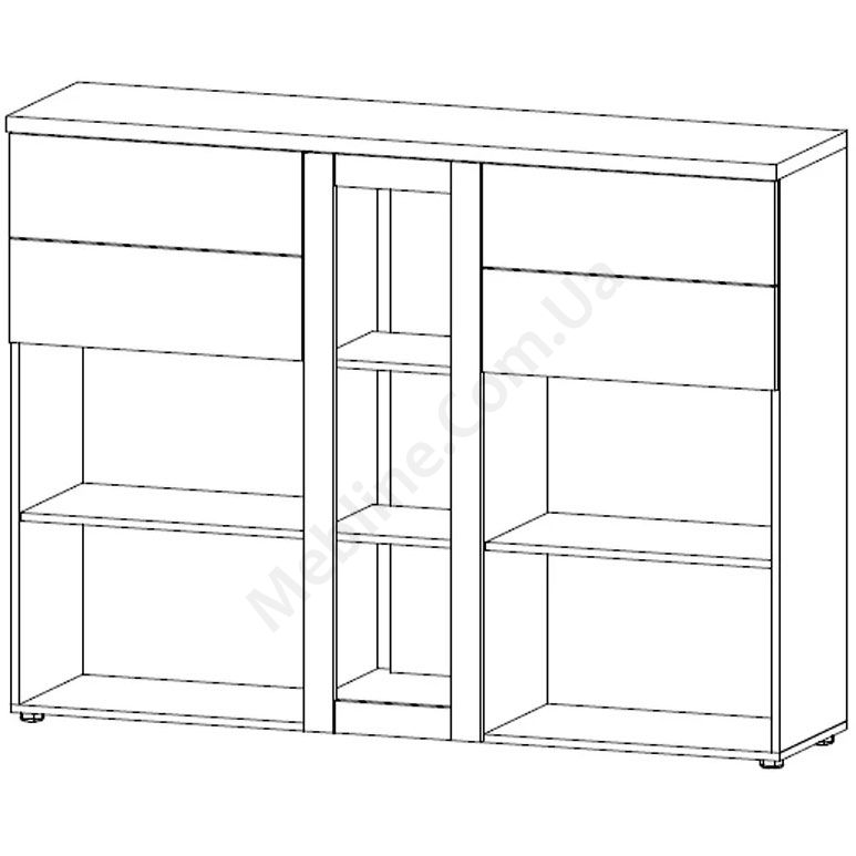 Тумба з дверцятами, висувними шухлядами та відкритими секціями.
