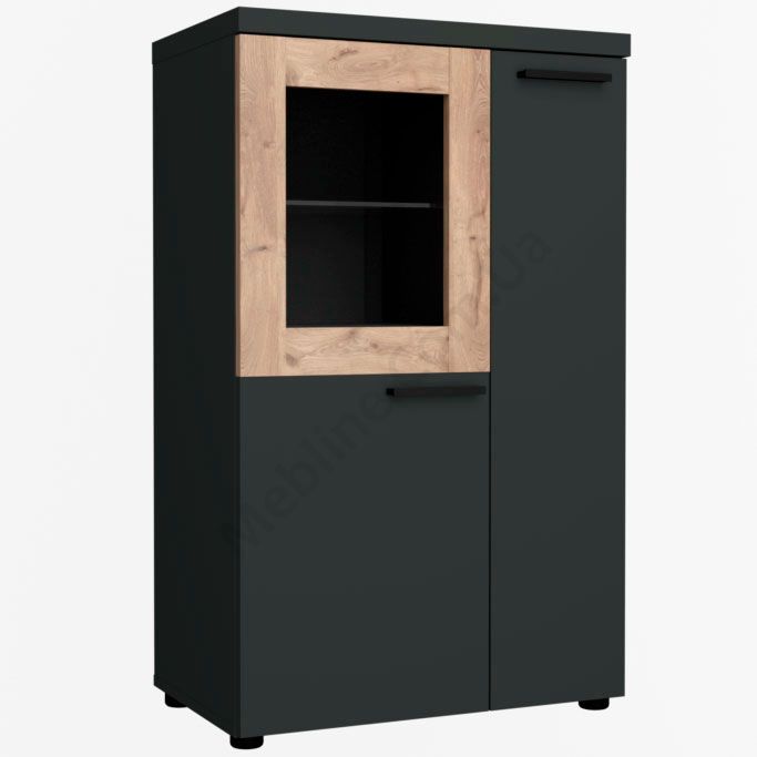- Двоє розпашних дверцят, одна зі скляною вставкою.