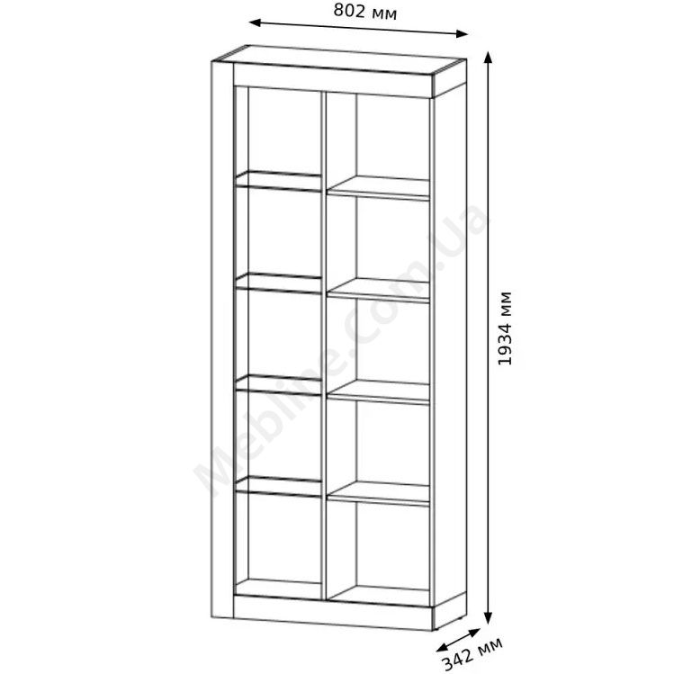 - За скляними дверцятами чотири скляні полиці, за глухими — чотири полиці з ДСП.
