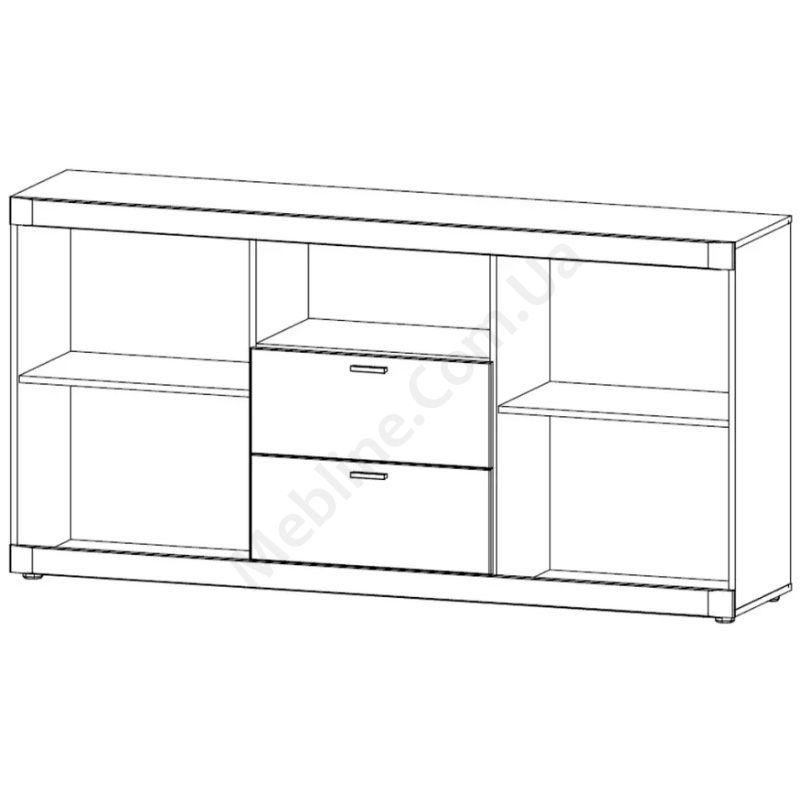 Тумба з дверцятами, відкритою секцією та двома шухлядами.
