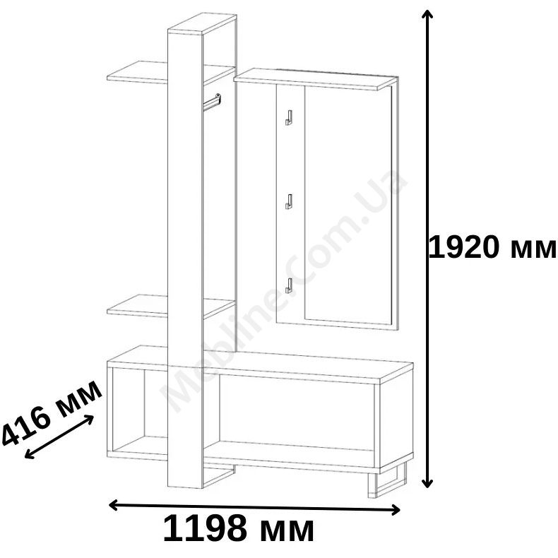 - Стійка зі штангою для одягу та двома відкритими поличками.