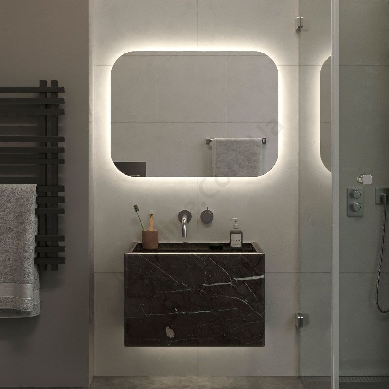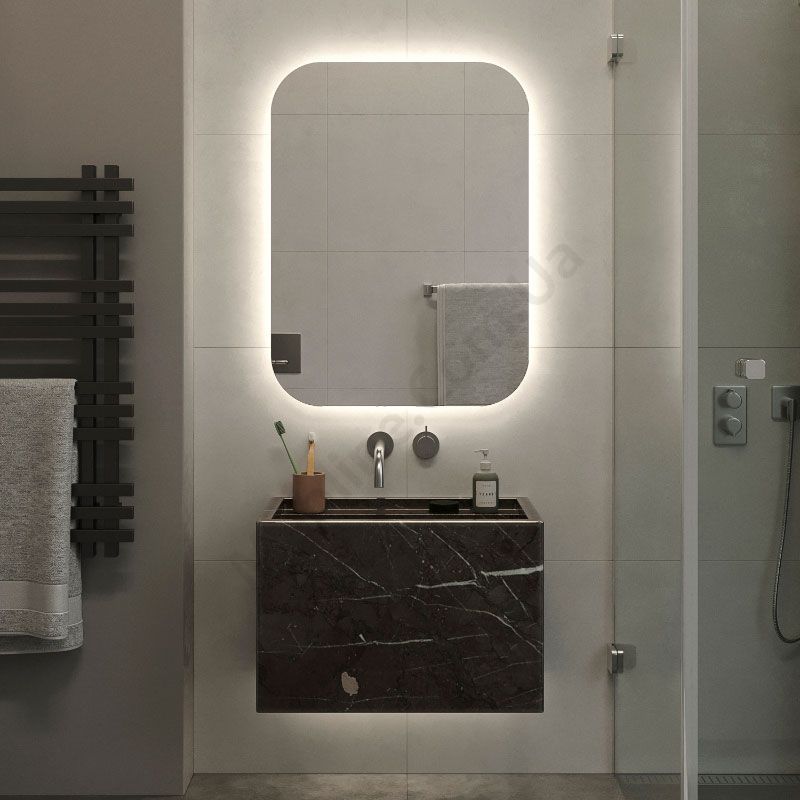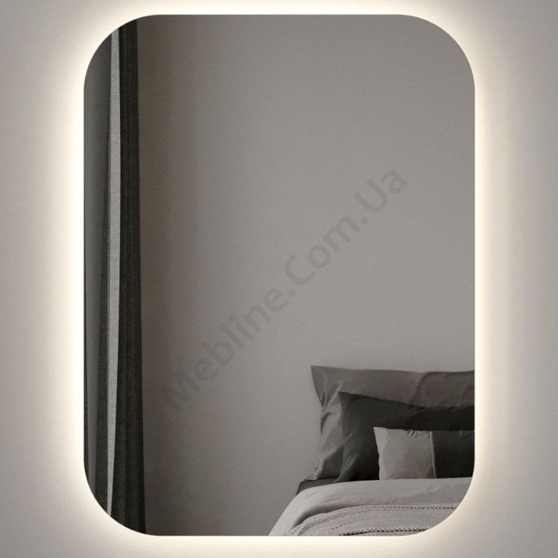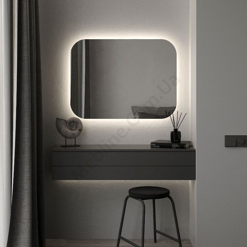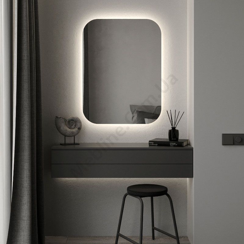 Прямокутне дзеркало з закругленими кутами та підсвічуванням.