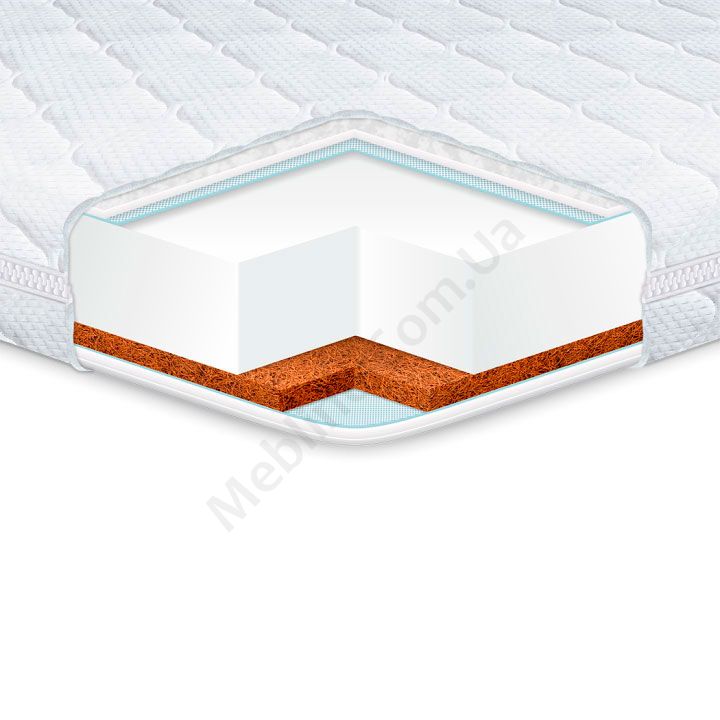 Двосторонній з різною жорсткістю сторін помірно жорсткий матрац без пружинного блоку зі спальним місцем розміром 630*1250 мм та висотою 90 мм.