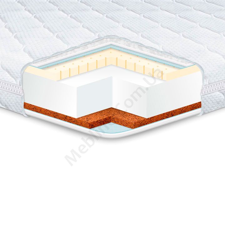 - Гіпоалергенна, еластична та пружна піна європейського походження, натуральний латекс та жорсткий шар кокосової койри забезпечують належну підтримку усіх відділів хребта для профілактики сколіозу на ранніх етапах.