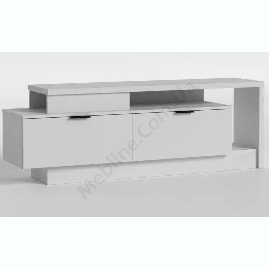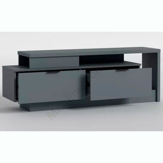 Тумба під телевізор з висувними шухлядами та відкритими секціями.