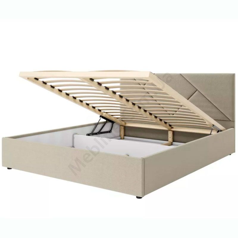 Двоспальне ліжко з м’якою оббивкою та підйомним механізмом.
