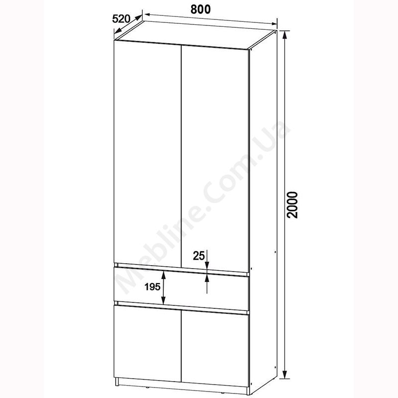 Двостулкова шафа з висувною шухлядою та полицями всередині.