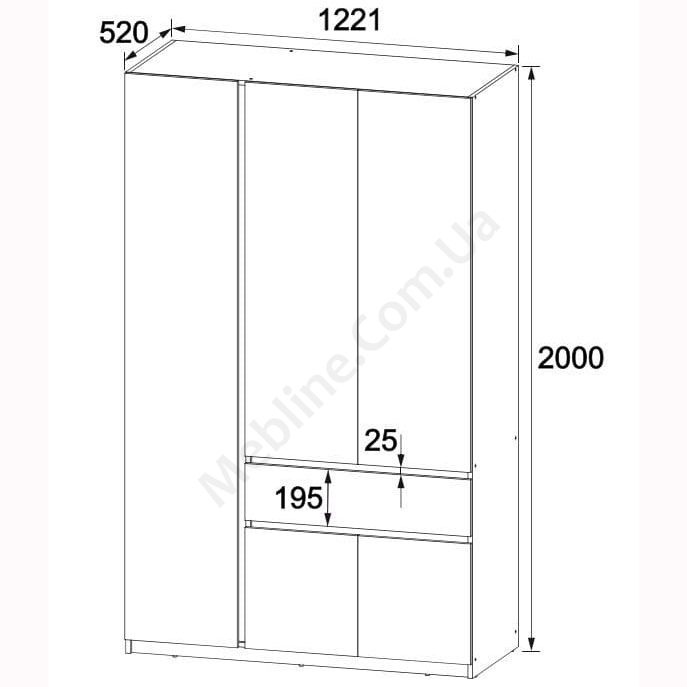 Тристулкова шафа з висувною шухлядою та полицями всередині.