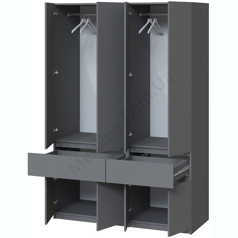 Чотиристулкова шафа з висувними шухлядами та штангами для одягу.