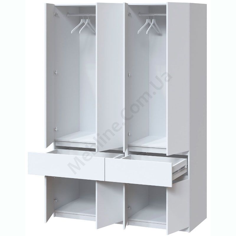 Чотиристулкова шафа з висувними шухлядами та штангами для одягу.