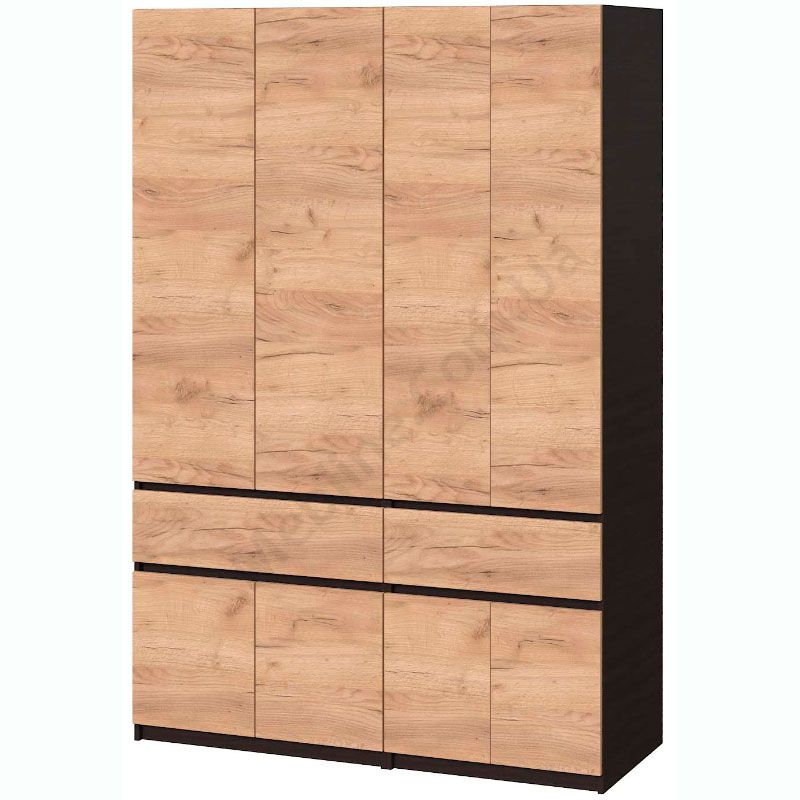 Чотиристулкова шафа з висувними шухлядами та штангами для одягу.