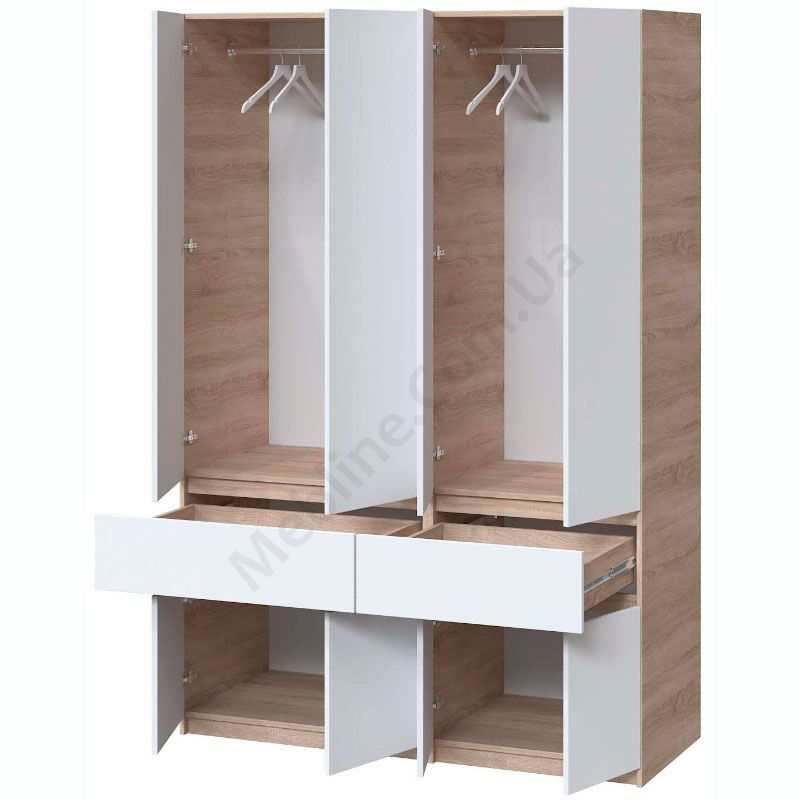 Чотиристулкова шафа з висувними шухлядами та штангами для одягу.