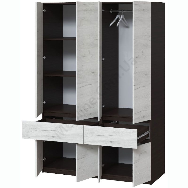 Чотиристулкова шафа з висувними шухлядами та штангою та полицями.