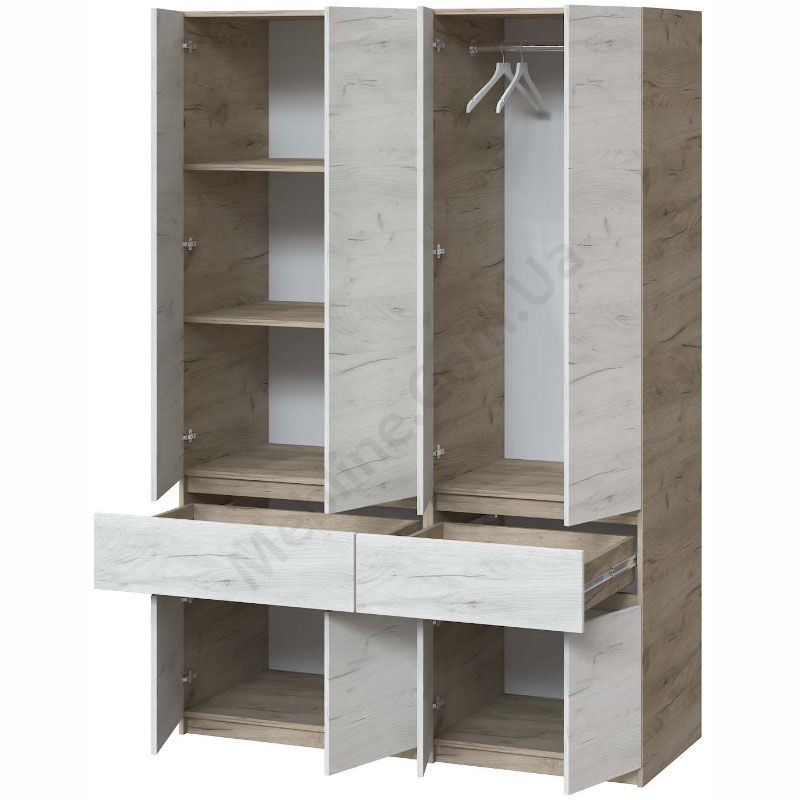 Чотиристулкова шафа з висувними шухлядами та штангою та полицями.