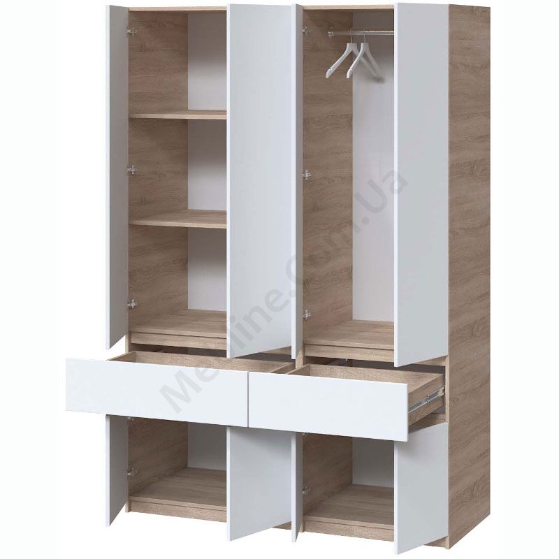 Чотиристулкова шафа з висувними шухлядами та штангою та полицями.
