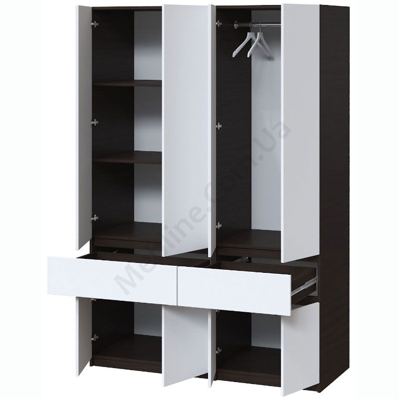 Чотиристулкова шафа з висувними шухлядами та штангою та полицями.