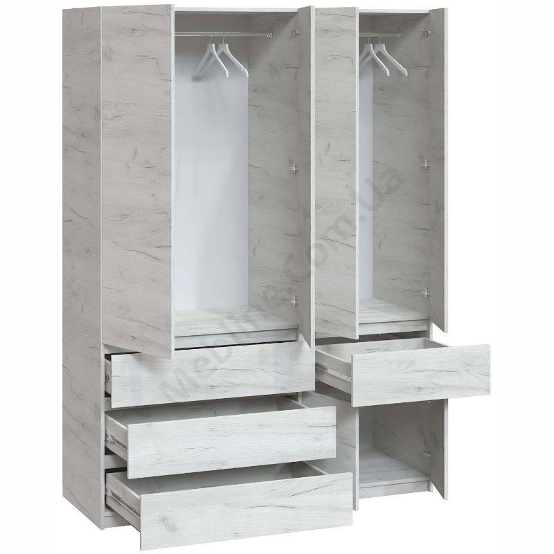 Чотиристулкова шафа з висувними шухлядами та штангами для одягу.