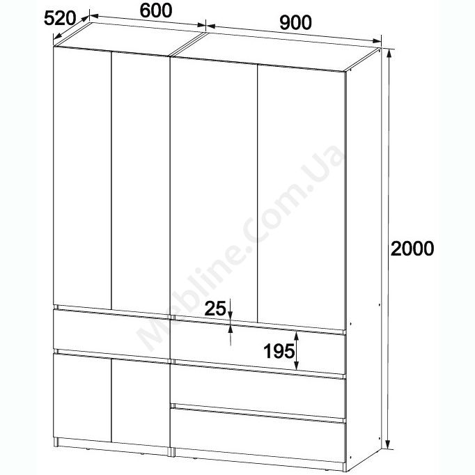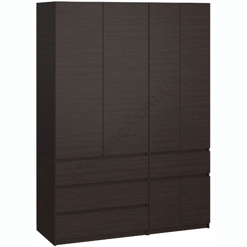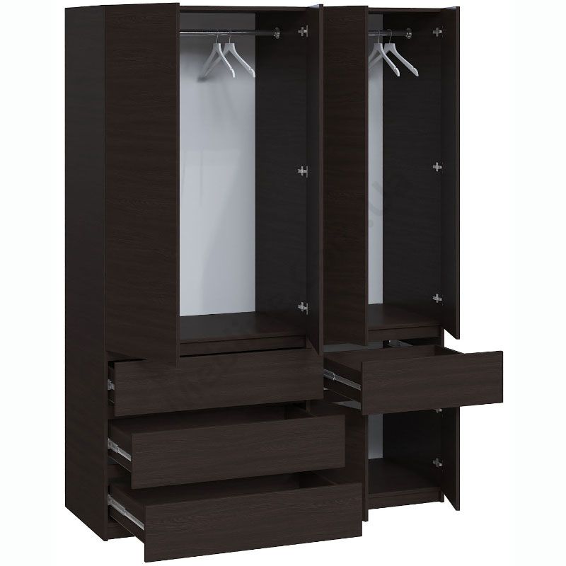 Чотиристулкова шафа з висувними шухлядами та штангами для одягу.