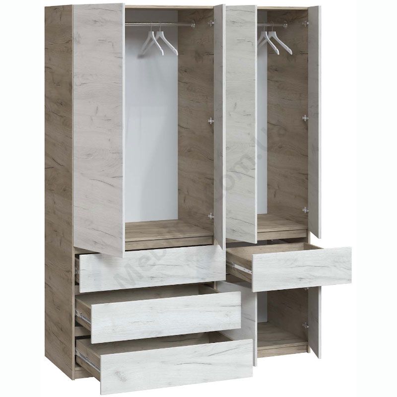 Чотиристулкова шафа з висувними шухлядами та штангами для одягу.