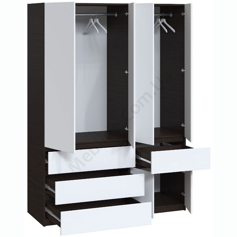 Чотиристулкова шафа з висувними шухлядами та штангами для одягу.