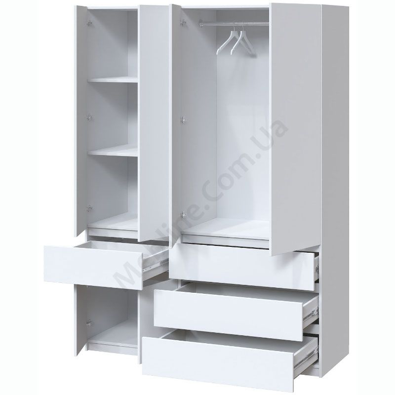 Чотиристулкова шафа з висувними шухлядами, штангою та полицями.