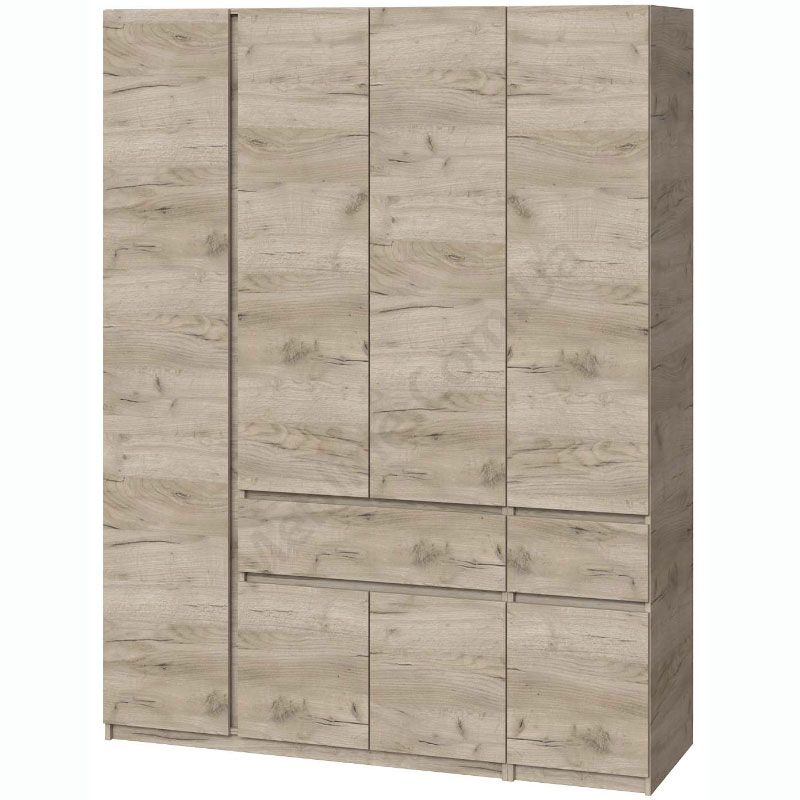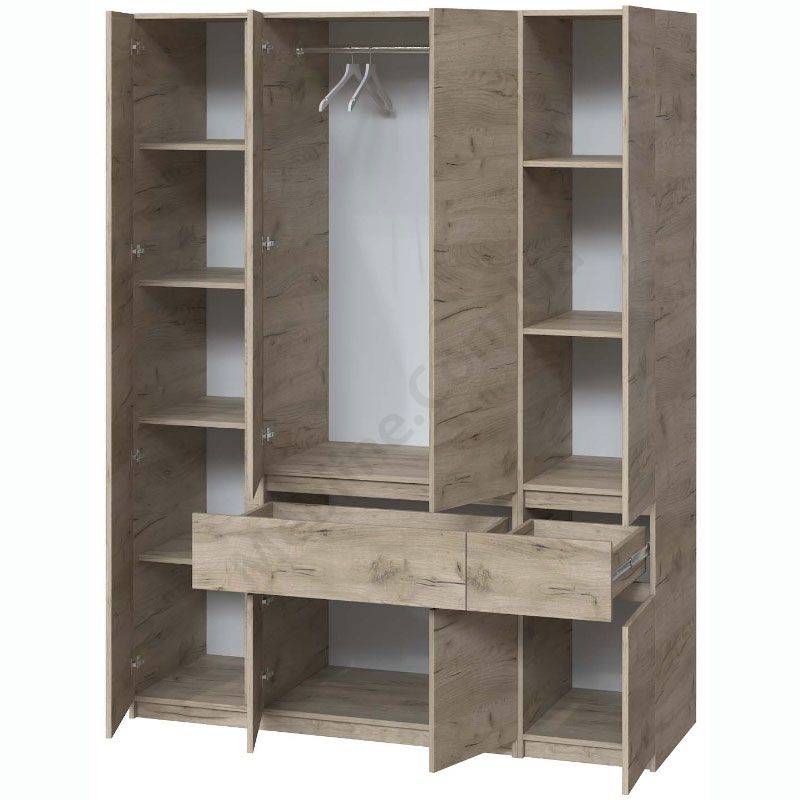 Чотиристулкова шафа з висувними шухлядами, штангою для одягу та полицями.