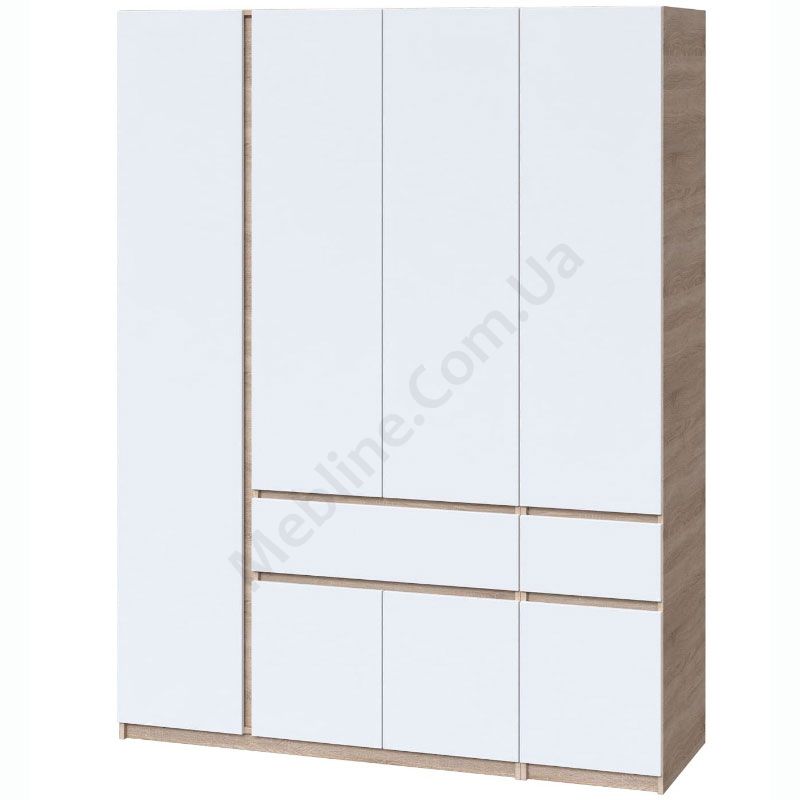 Чотиристулкова шафа з висувними шухлядами, штангою для одягу та полицями.