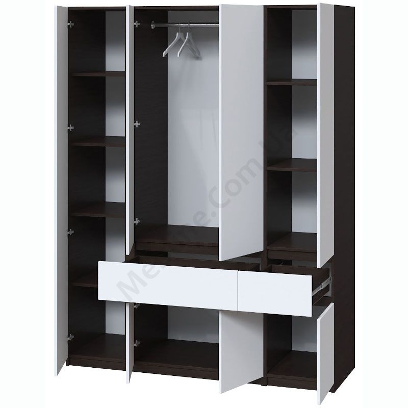 Чотиристулкова шафа з висувними шухлядами, штангою для одягу та полицями.