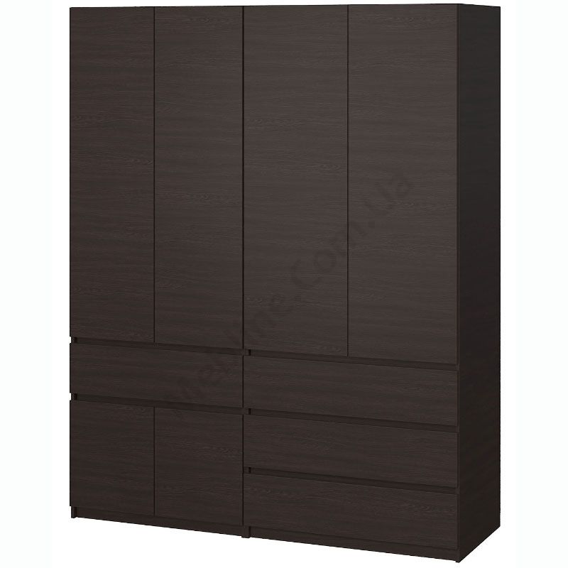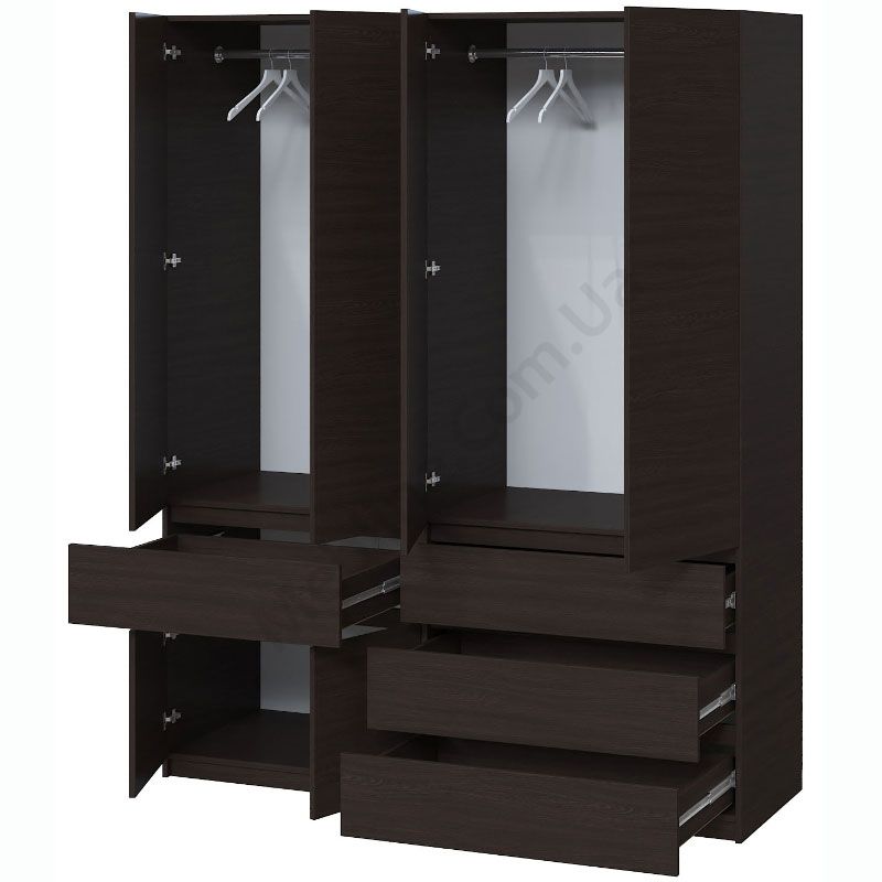 Чотиристулкова шафа з висувними шухлядами та штангами для одягу.