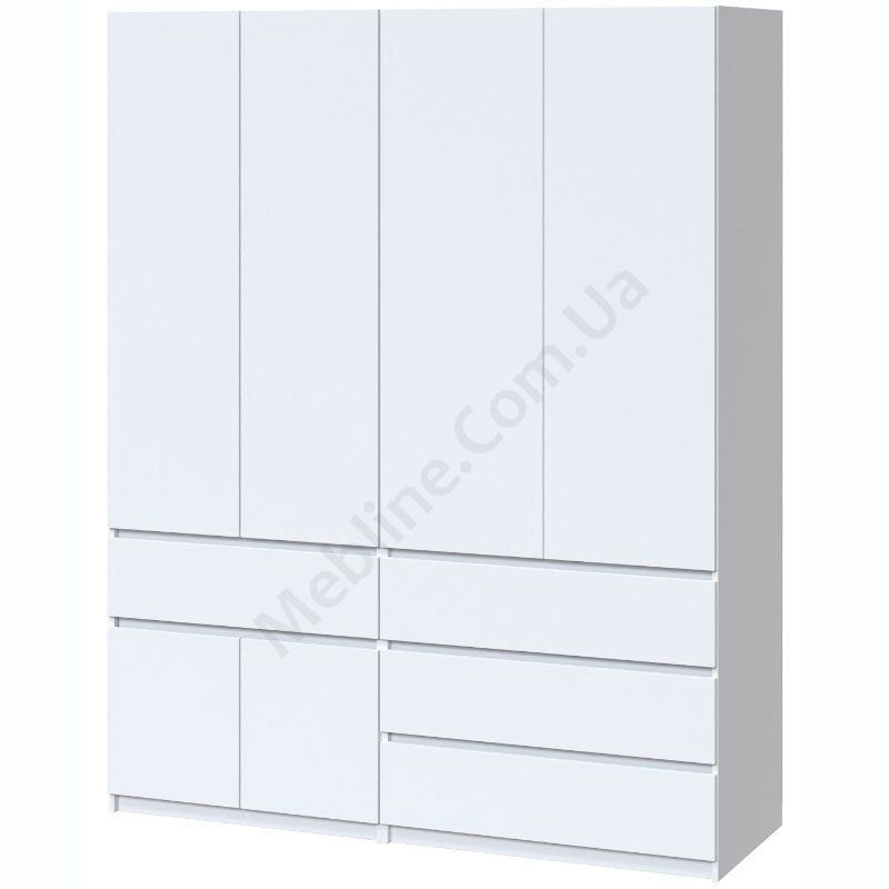 Чотиристулкова шафа з висувними шухлядами та штангами для одягу.
