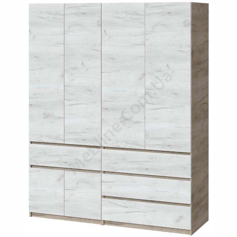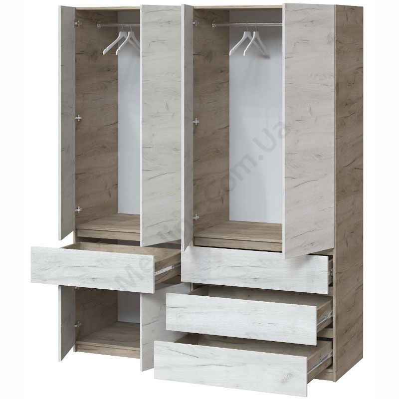 Чотиристулкова шафа з висувними шухлядами та штангами для одягу.