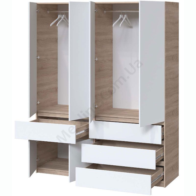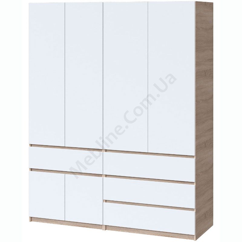 Чотиристулкова шафа з висувними шухлядами та штангами для одягу.