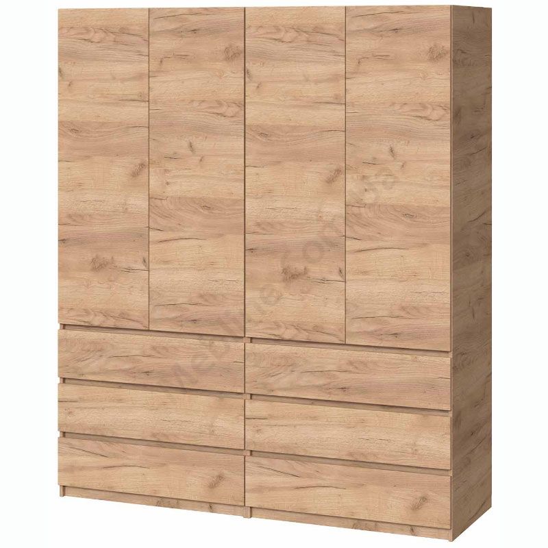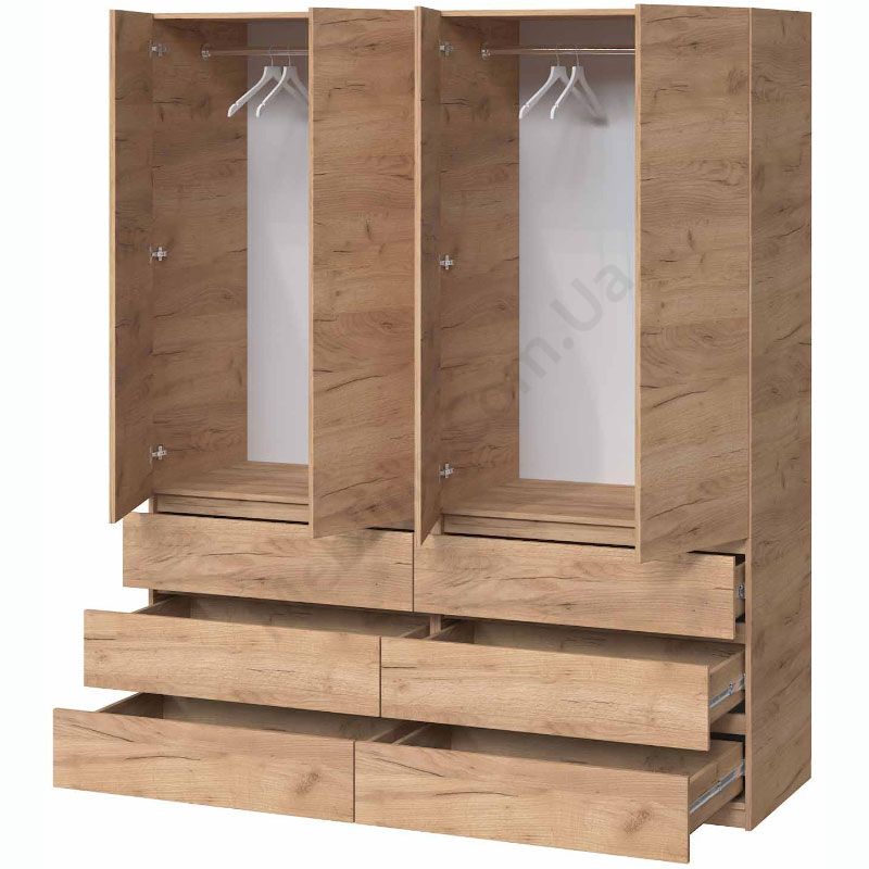 Чотиристулкова шафа з висувними шухлядами та штангами для одягу.