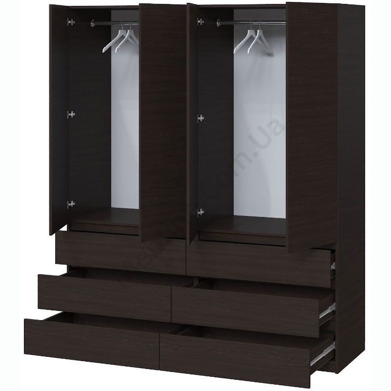 Чотиристулкова шафа з висувними шухлядами та штангами для одягу.