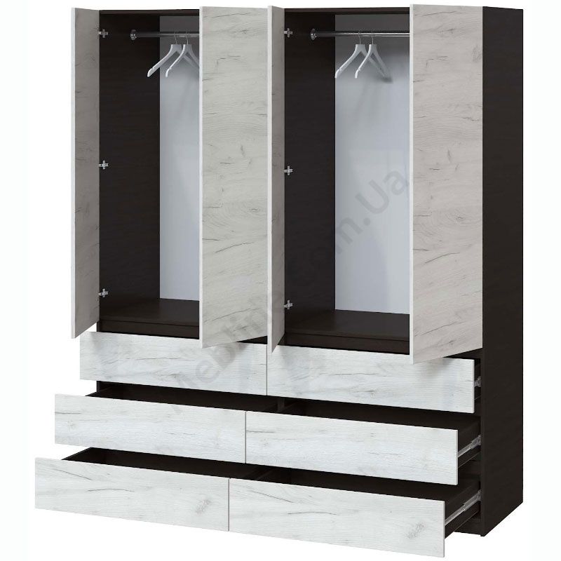 Чотиристулкова шафа з висувними шухлядами та штангами для одягу.