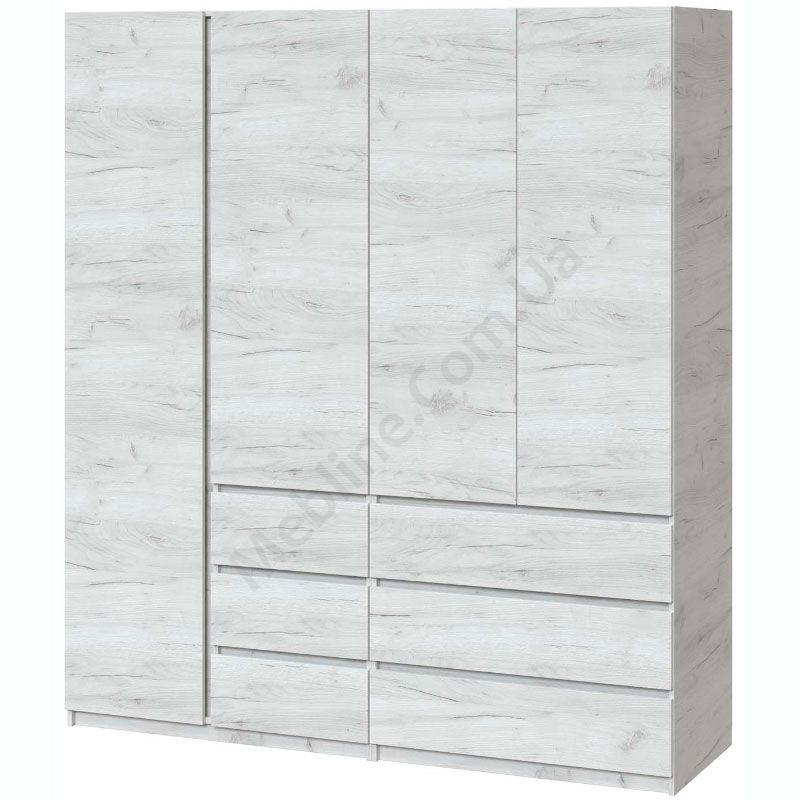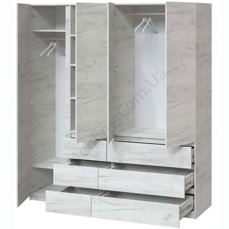 Чотиристулкова шафа з висувними шухлядами, штангами для одягу та полицями.