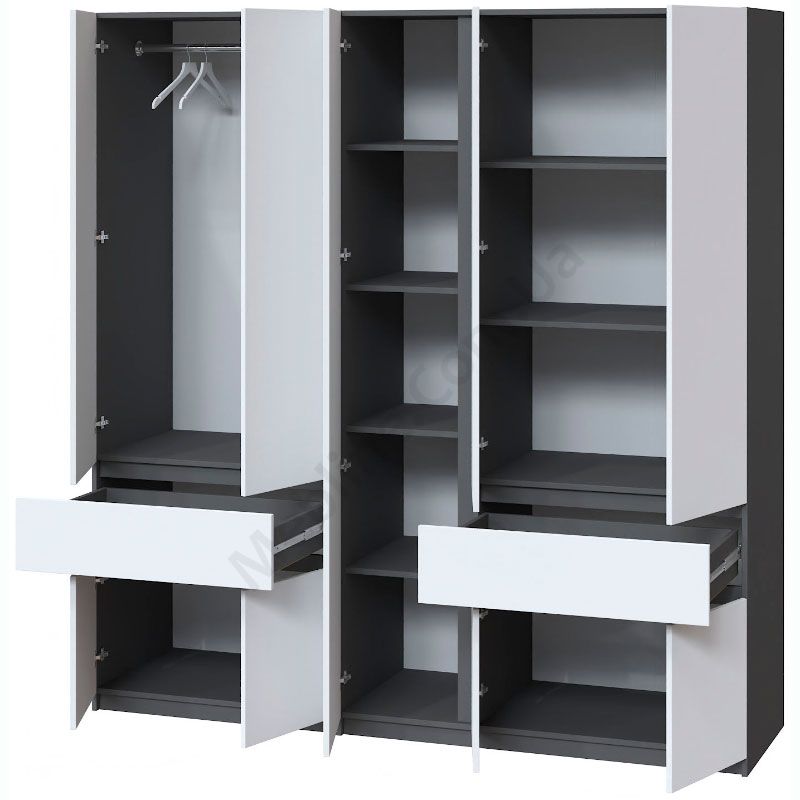 У магазині Ви можете купити Шафа Брайт 2021х520х2000 з полицями Антрацит + Білий за доступною ціною та доставкою по всій Україні. Обирайте Шафа (пенал) від фабрики Мастер Форм для облаштування передпокою, вітальні, спальні в інтернет магазині меблів.
